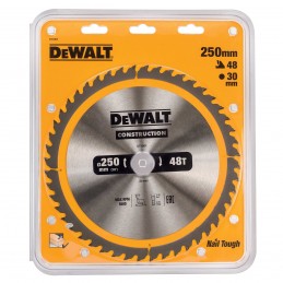 Les lames Construction sont adaptés pour les applications de gros œuvre, la ou la finition est moins importante. Elles sont idéales pour la découpe de bois avec clous et pour résister aux dommages. DT1957-QZ - Hoja para construcción 250x30mm 48D Lame de scie circulaire 250 mm x 30 mm x 48 dents