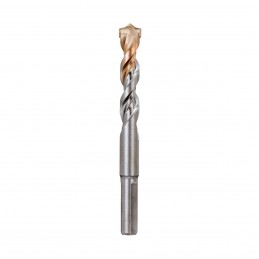 Forets béton avec 3 mets plats pour une meilleure tenue. Utilisée en règle générale pour le perçage de trous d'ancrage, de vidange plastique, de fixation ou de dégagement dans des tuyauteries. Intégrant également un emmanchement antiglissement. Convient aux matériaux de maçonnerie, aux briques, aux pierres, aux tuiles et au béton légerMétal dur unique avec soudage cuivre haute température à faibles contraintes, optimisé pour une durabilité maximale et une sécurité de ruptureCorps en acier trempé avec renfort de la partie centrale et usiné en spiral par grandes quantités. Pour une résistance à la rupture maximale combinée à une avance de perçage très rapide Pour un travail plus propre et plus précis