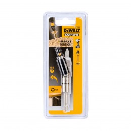 Extreme Impact Pivoting Bit Tip Holder inc. PZ2 25mm PORTE-EMBOUTS PIVOTANT À 20° + 1 EMBOUT PZ2 Pour utilisation avec des perceuses avec ou sans fil Résistant et durable, ce porte-embouts pivotant convient pour une visseuse à percussion. Ils sont compatibles avec la plupart des mandrins de visseuse, en particulier avec les produits DEWALT