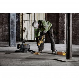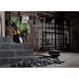 Perforateur haute performance, perçage de 74 trous ((18mm Ø x 80mm) par chargeMoteur Brushless allié à la grande puissance et capacité des batteries XR FLEXVOLT 54V pour une grande performance et autonomie de travailPerform & Protect réduisant les vibrations à 6,3 m/s², moins de fatigue pour l'utilisateurIdéal pour le perçage de trous d'ancrage dans le béton, la brique et les divers matériaux de construction de 4 à 32mmMandrin à connexion rapide SDS-Plus et mandrin à connexion rapide 3 mors pour passer rapidement d'un mode à l'autre : burinage / perforation / perçage simpleStop de rotation pour les travaux de burinage léger dans le plâtre, les carreaux et l'enduit. Stop de percussion pour le perçage simple dans le bois et le métalLampe LED avec temporisation pour améliorer la visibilitéSystème anti-rotation qui détecte la perte de contrôle de l'outil et réagit instantanément en coupant l'alimentation électriqueFonction Wireless Tool Control permettant d'appairer le perforateur avec un aspirateur Dewalt, pour un fonctionnement en simultané Garantie 3 ans Equipements inclusPoignée latérale multi-positions (1)Mandrin à connexion rapide 3 mors (1)Mandrin à connexion rapide porte-outil SDS-Plus (1)Coffret TSTAK (1)Batteries XR FLEXVOLT 54V (2)Chargeur multi-voltage (1)Accessoires (17)