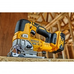Moteur brushless pour plus d'autonomie et durabilité - Gâchette avec variateur de vitesse et possibilité de blocage en marche continu pour un bon contrôle des coupes - Mouvement pendulaire à 4 étages pour mieux contrôler la scie et réaliser des coupes nettes - Semelle réglable sans outil, inclinable jusqu'à 45° de chaque côté, avec semelle additionnelle anti-rayures - Mécanisme de changement rapide de lame sans clé acceptant les lames à emmanchement en T - Confort optimisé avec la conception ergonomique et caoutchoutée de la poignée et de la partie supérieure - Soufflerie pour dégager la ligne de coupe de la poussière et des débris - L'éclairage de travail à LED aide à la visibilité de la ligne de découpe -