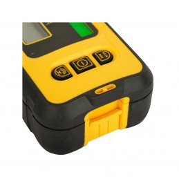 Sélection des paramètres de précision étroites et larges - Arrêt automatique du détecteur s'il est inactif au bout de 5 mn afin de ménager les batteries - Compatible avec les lasers DCE088D1G et DCE089D1G - Très simple d'utilisation - Écran LCD - Pince de serrage robuste résistant bien aux conditions rencontrées sur les chantiers - Aimants pour être montés sur des pistes métalliques - Jusqu'à 50 m de portée -