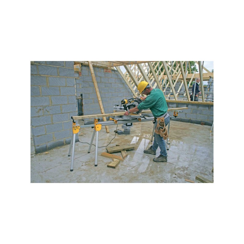 Les pieds repliables apportent une véritable facilité d'utilisation - Convient pour toutes les scies à onglets DEWALT - Les arrêts peuvent être transformées grâce aux butées pour des coupes de matériaux de grandes longueurs - Ce piètement conçu pour les experts toutes options reste léger et facilement transportable grâce à sa conception en aluminium - 16 kg - longueur 1,7 mètres extensible jusqu'à 3,83 mètres permettant de supporter des pièces extrêmement longues - Poignée intégrée facilitant le transport - Ce piètement peut supporter jusqu'à 227 kg de charge, ce qui le rend très polyvalente -