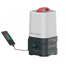 Il est étanche à la poussière et à l'eau (IP65). AREA 10 CONNECT possède aussi une Power Bank intégrée avec une prise USB pour recharger les appareils mobiles.