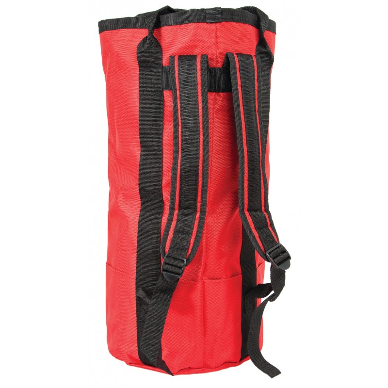 Moyen sac à corde en nylon avec bretelles. Capacité 100m de corde 12mm ou 200m de corde 10mm. Dimensions 26x61cm, diamètre 26cm. Poid 0,9kg