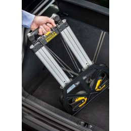 Diable pliable Fatmax 70kg en aluminium léger et résistant. Poignée souple antidérapante et cordon élastique. Points de tension plastique en nylon résistant. Se plie et s'ouvre en quelques secondes; facile à utiliser et à stocker.