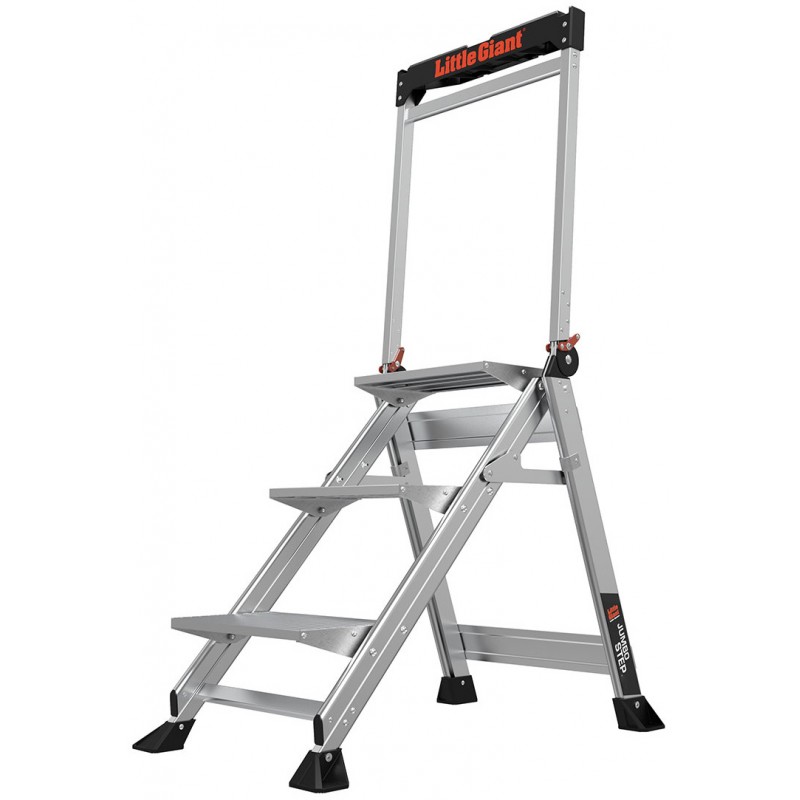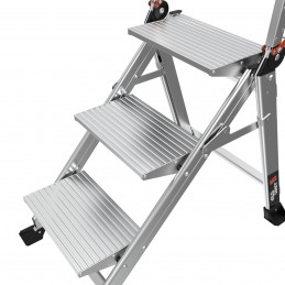 Marche pied Jumbo step 3 marches - hauteur d'accès de 2m60 - Aluminium - Sysyème d'ouverture et de fermeture simplifié - garde-corps - porte outils