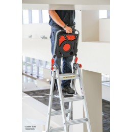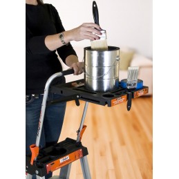 La station de travail AirDeck® est un accessoire multi-usage, a la fois plateau et main courante, conçu pour votre échelle Little Giant® et vous permettant de terminer vos projets plus facilement. En utilisant l'AirDeck comme main courante, vous pouvez maintenir trois points de contact sur l’échelle. Avec ses rainures, ses encoches et ses renfoncements, l'AirDeck est parfaitement conçu pour garer vos outils à portée de main, supporter vos pots de peinture et autres matériaux. Cet accessoire supporte jusqu'a 11 KG.