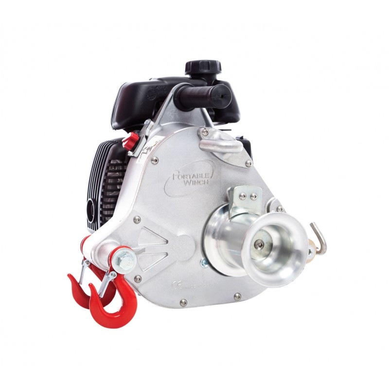 Treuil de tirage à essence. Force de tire max 350kg. Poid 16kg, vitesse 36m/min. Motorisation honda 4 temps GXH-50cc. Diamètre de corde idéal 12mm