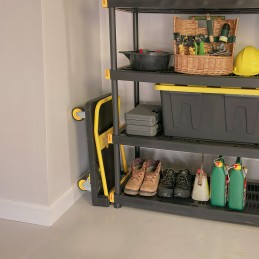 Chariot profesionnel 150kg à 4 roues pour travaux lourd. Principaux points de tension en nylon durable et acier. Poignée acier pliable. Plateau polypropylène ultra-résistant. Idéal pour entrepôts, magasins, service de livraison et déménageurs pro.
