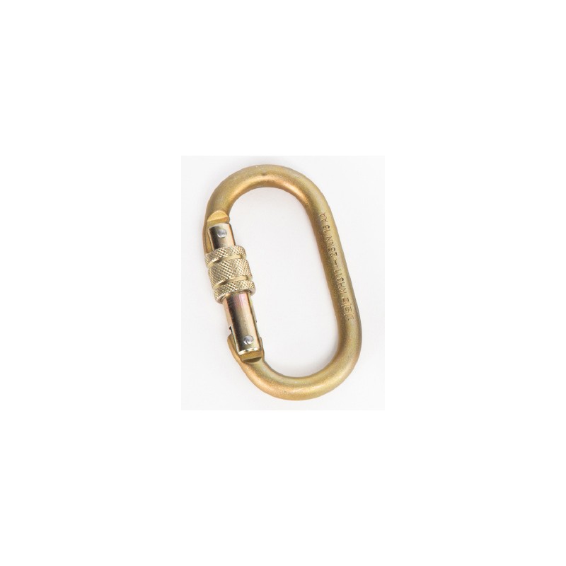Mousqueton bloquant ovale acier 5,8x10,7cm. Force de rupture 25 KN/ 2250KG. Poid 0,16kg