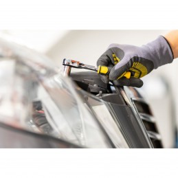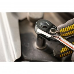1 Cliquet 72 dents ¼’’ - 12 Douilles ¼’’ (12 pans) : 4-4,5-5-6-7-8-9-10-11-12-13-14 - 1 Rallonge 75 mm - 1 Porte embout - 22 Embouts : PZ1 - PZ2 - PZ3 – PH1 - PH2 - PH3 - Hexagonal 3 - 4 - 5 - 6 - 7 – Torx 10 - 15 - 20 – 25 - 27 - 30 - 40 – Fente 4 - 5 - 6 - 7 dans une boîte compacte et résistante - Présentoir comptoir par 5 pcs