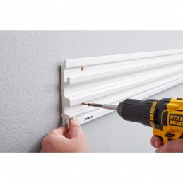 Système aménagement entièrement personnalisable pour son atelier ou son garage -121 x 2,5 x 14 cm - Poids réparti supporté 35 Kg -S’adapte bout à bout dans la largeur et hauteur, peut être coupée - Installation avec vis et visseuse sur tout type de murs - Facile et simple à monter sur des plaques de plâtre, murs ou poteaux. Mécanisme d’accroche par attaches pivotantes pour un montage rapide et facile et un maintien de longue durée en toute sécurité. Sécurité et longévité garanties pour ce système fabriqué en mélange de résine inoxydable et hautement résistante, y compris aux déformations.
