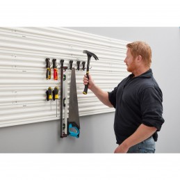 S'accroche sur rail Trackwall (STST82602-1) - 9 x 4,5 x 22,5 cm - Poids supporté 1-2,5 kg - Système aménagement entièrement personnalisable pour son atelier ou son garage. Facile et simple à monter sur des plaques de plâtre, murs ou poteaux. Mécanisme d’accroche par attaches pivotantes pour un montage rapide et facile et un maintien de longue durée en toute sécurité. Sécurité et longévité garanties pour ce système fabriqué en mélange de résine inoxydable et hautement résistante, y compris aux déformations.
