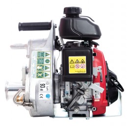 Treuil de tirage à essence. Il a une force de tire max de 1000kg et pèse 16kg. Sa vitesse de tire est de 12m par minutes. Motorisation honda 4 temps GXH-50cc. 2 options de vitesse en changeant le tambour de 57mm par un de 85mm tirant 18m par minutes. Le diamètre idéal de la corde est de 12mm