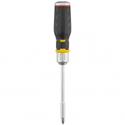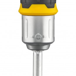 mécanisme à cliquet de 40 dents pour un "usage" professionnel (3 fois la capacité humaine) stockage de 12 embouts dans le manche, 3 positions: vissage, dévissage, blocage