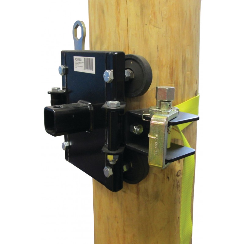 Système d'ancrage de treuil en acier pour arbre et poteaux. Dimensions de 27x32cm , poid 8,2kg. Compatible avec le plateau de support PCA-1268 permettant au treuil d'être à une hauteur plus confortable et de pivoter afin de s'aligner automatiquement à la charge. Ou avec le support de tire vertical PCA-1264. 4 rondelles de caoutchouc empêchent le système de glisser sur le poteau et protègent l'écorce de l'arbre.