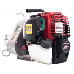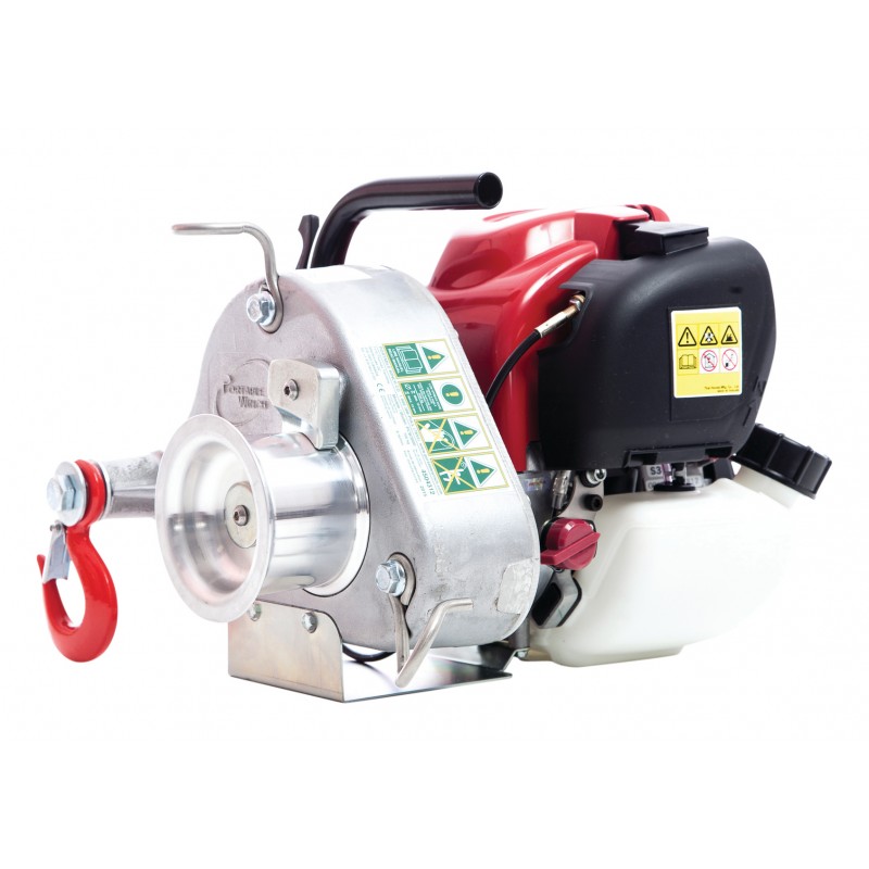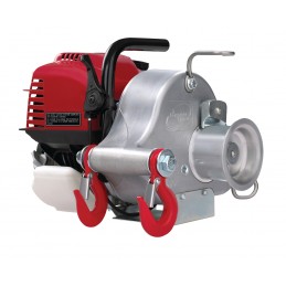 Treuil de tirage à esence. Force de tire max 700kg. Poid 9,5kg. Vitesse de 10m/min. Motorisation Honda 4 temps GX-35cc. Diamétre idéal de la corde 10mm