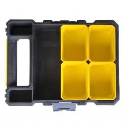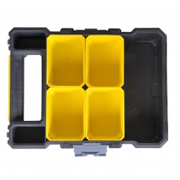 6 compartiments amovibles + 2 fixes- Corps en polypropylène avec joints d’étanchéité - Système breveté avec encoches sous le couvercle - Couvercle en polycarbonate transparent - Poignée intégrée - Possibilité d’empiler jusqu’à 3 organiseurs pour transport à une main