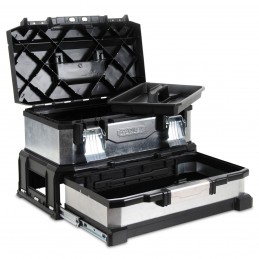 Bi matière: métal galvanisé et polypropylène - Poignée télescopique ajustable - 4 tiroirs profonds ajustables permettant le stockage d'outils énergisés ou de petits outils