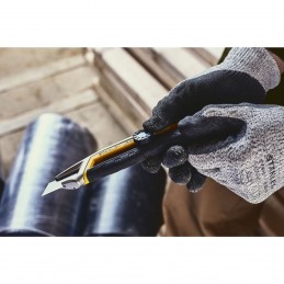 Système de casse-lame rapide et sûr : permet de casser un segment de lame d’une seule main en toute sécurité - Réglage de la profondeur de coupe par molette crantée - Poignée bimatière pour plus de confort - Guide-lame en acier inoxydable pour plus de durabilité - Chargeur de lame magnétique - Livré avec une lame 18 mm FATMAX