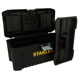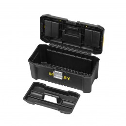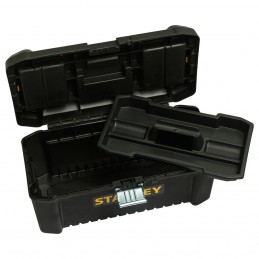 Large attache en métal pour éviter les ouvertures intempestives en cas de chute - 2 organiseurs sur le couvercle - plateau porte-outils amovible sur les 2/3 de la longueur de la boîte pour faciliter le rangement des longs outils (scie, niveau)