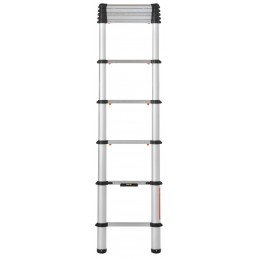Cette échelle dispose d'un système de verrouillage simple avec seulement deux boutons. Son mécanisme repose sur un système à coussins d'air sécurisé pour éviter tout pincements. Sa taille la rend facile à manipuler et à transporter dans les espaces confinés. Elle est fabriquée en aluminium anodisé haute qualité et avec des raccords plastiques renforcés par de la fibre de verre.