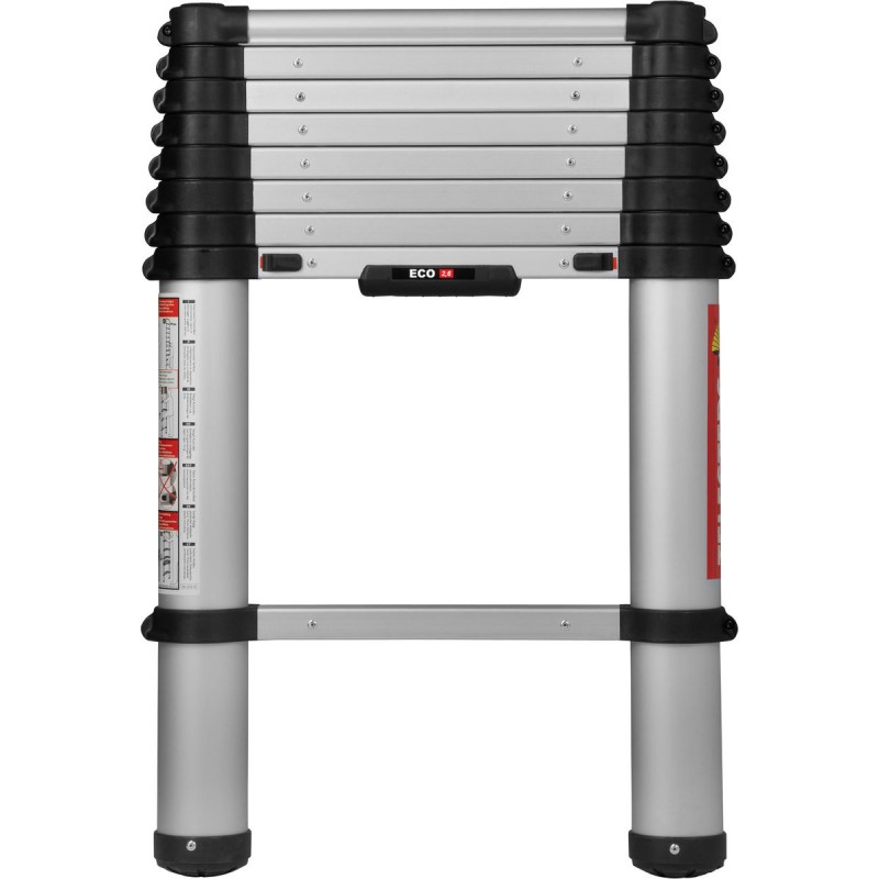 Echelle télescopique Ecoline 3m. Système de verrouillage simple avec seulement deux boutons. Système intégré d’amortissement d’air.