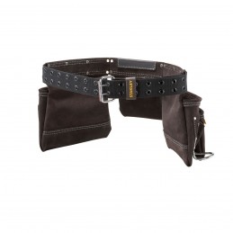 Cuir qualité supérieure, flexible et résistant. Solide avec renforcement par rivets, double couture piquée et renforcement des coins. Boucle métallique à double ardillons haute résistance-Ceinture robuste et ajustable facile à utiliser-Porte-Marteau en acier-De multiple poches et de porte-outils pour un accès rapide aux outils sur le chantier