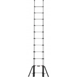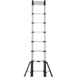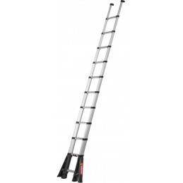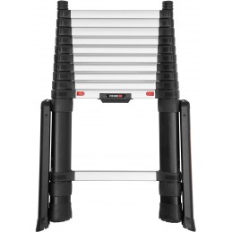 Echelle Telescopique Telesteps Prime 4,10m avec stabilisateurs latéraux. Dévérrouillage simple entièrement automatique. Hauteur d'accès 4,90m. Hauteur fermée 0,94m. Design triangulaire. Encombrement minimal. Aluminium anodisé.