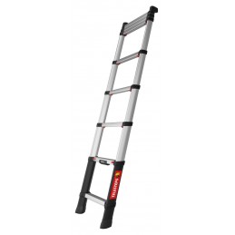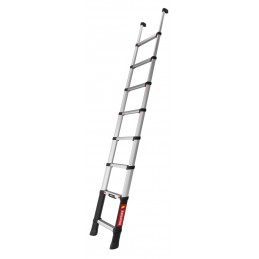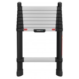 La Prime 2,60M offre une hauteur de travail de 3,40m. La Prime est la première échelle télescopique dotée de notre profilé au design triangulaire révolutionnaire, lui donnant une rigidité et une robustesse inégalées. L’échelle est conçue pour être utilisée avec un angle d’inclinaison de 75 degrés. Dévérouillage simple avec seulement 2 boutons. Entièremenent automatique. Les larges marches inclinées et rainurées restent bien parallèles au sol, assurant une parfaite sécurité en toute circonstance. Prime réunit tous nos savoir-faire dans la conception d'échelles de qualité, ouvrant une nouvelle ère où se conjuguent sécurité, qualité et design.