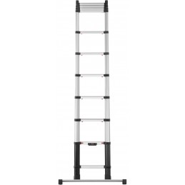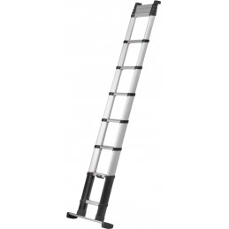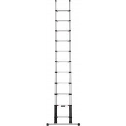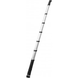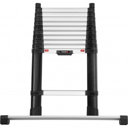 Echelle Telescopique Telesteps Prime 4,10m avec barre stabilisatrice. Dévérrouillage simple entièrement automatique. Hauteur d'accès 4,90m. Hauteur fermée 0,94m. Design triangulaire. Encombrement minimal. Aluminium anodisé.