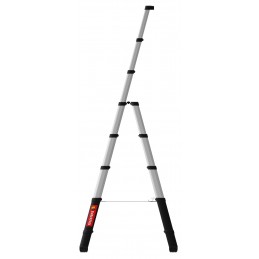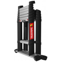 Escabeau telescopique Telesteps Combi 2,30m. Profilés triangulaires. Marches large de 80mm. Utilisable en echelle d'appui. Entièrement automatique, se déverouille avec 4 boutons.