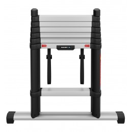 Escabeau telescopique Telesteps Combi 3m.Marches large de 80mm. Profilés triangulaires. Utilisable en echelle d'appui. Entièrement automatique, se déverouille avec 4 boutons.