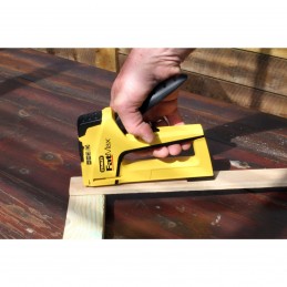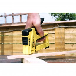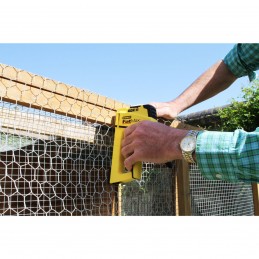 Pour agrafes Type “A” 4 à 14mm, agrafes pour câble 10mm à 14mm, clous Type “J” 12 à 15mm avec ou sans tête, Fournie avec échantillon d'agrafes et clou, magasin métal avec guide-agrafes intégré