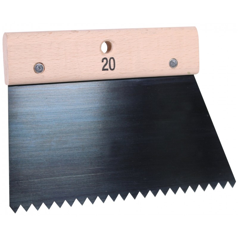 Le couteau à colle est un outil composé d'une lame crénelée et d'un support en bois qui permet d'étaler et d'appliquer de la colle régulièrement sur la surface à recouvrir.