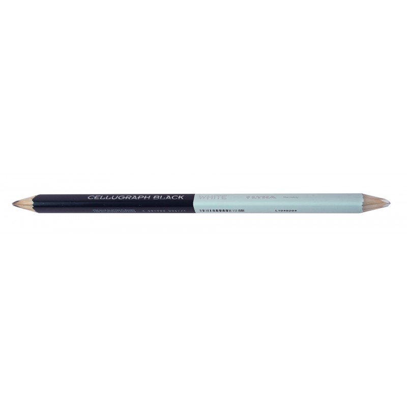 blister 2 crayons universels lyra cellugraph black/white-240 mm, Ø12mm. Forme ergonomique triangulaire - Un coté mine grise identique au Lyra Cellugraph classique - Un coté mine blanche à haut pouvoir couvrant