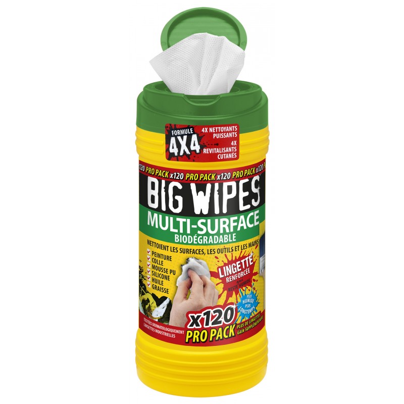 Multi-Surface pack 120 lingettes nettoyantes. compostables .4 agentes nettoyants, 4 hydratants. Testé dermatologiement, lotion biodégradable, protection antibactérienne 99%. Tissus absorbant, texture délicate pour les travaux de finitions.
