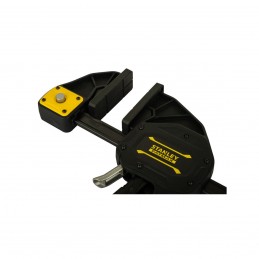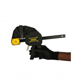 Puissance de serrage 270kg/m² - Se transforme facilement en écarteur : déblocage des mâchoires par simple pression sur le bouton - Gâchette de desserrage en métal-Poignée ergonomique anti-dérapante-Structure poignée en métal-Rail en acier en I-Corps en nylon renforcé-Rainures en V croisées sur le patin - Patins de protection de grande dimension