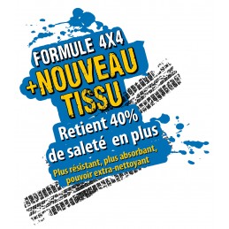 Lingettes Heavy-Duty texturées pour récurer et nettoyer. Idéal pour les mains. La face abrasive enlève même la saleté la plus tenace, et la face lisse absorbe la saleté. Le tissu quadruple épaisseur élimine 40% de salissures en plus à chaque passages.