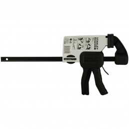 Puissance de serrage 135kg/m² - Se transforme facilement en écarteur : déblocage des mâchoires par simple pression sur le bouton-Poignée ergonomique anti-dérapante-Rail en acier en I-Corps en nylon renforcé-Rainures en V croisées sur le patin