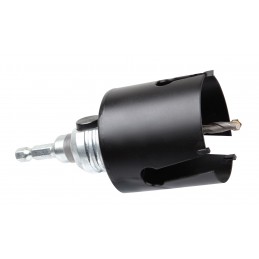 Scie trépan polyvalente permettant de percer une grande variété de matériaux. S'utilise sur perceuse ou perforateur via un pilote avec foret (système onehand) permettant un gain de temps important grâce au verrouillage et au déverrouillage de la scie en 1 seul geste. Spécialement adapté pour la pos