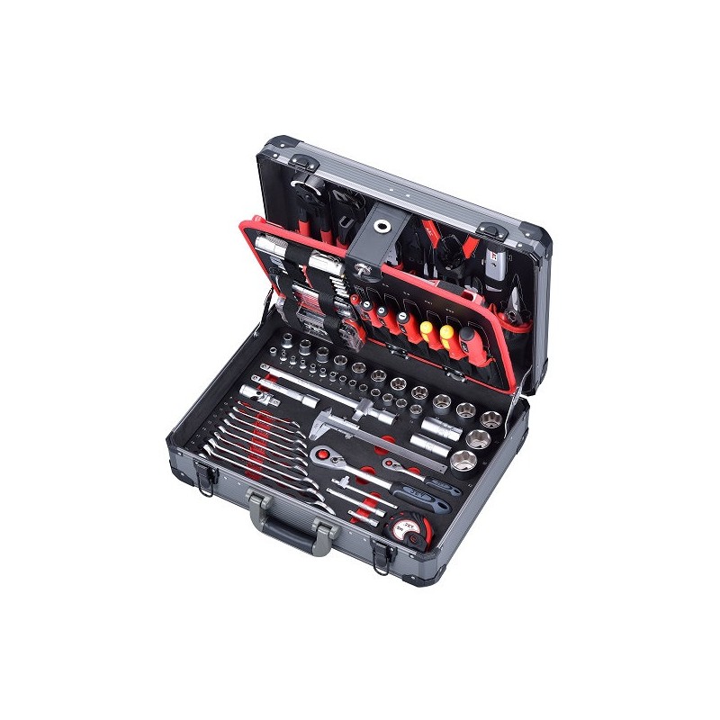 d’emploi maximale. Inserts en mousse compacte bicolore pour assurer une tenue. Parfaite et maintenir l’ordre dans les outils. Coffret en aluminium. 136 pièces de qualité. Dimensions : 510x200x430 mm. Poids : 12,8 kg