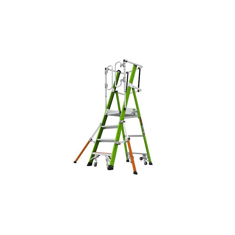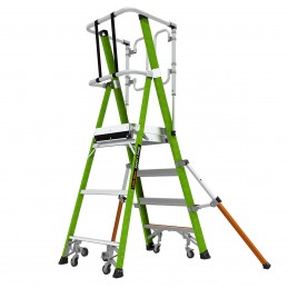 Plateforme Safety Cage 4 marches - Hauteur maximale d'accès de 2,85 m - Fibre de verre - système Groundcue - Stabilisateur latéraux - plateforme de sécurité - Roues sur ressorts - Faible encombrements