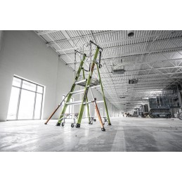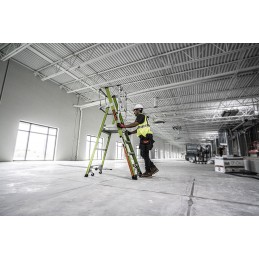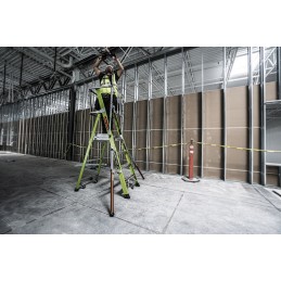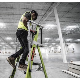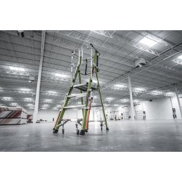 La Safety cage 4 marches offre une hauteur d'accès maximale de 2,85 mètres, construite avec un matériau composite de fibre de verre et résine non conducteur et à haute résistance, cette cage est plus mobile et légère que les autres options de plateforme, telles que les échafaudages. Elle peut ainsi être utilisé dans les zones où un élévateur mécanique ou un escabeau ordinaire n’ont pas accès. Avec sa conception compacte et ses roues Tip & Glide, elle est facile à ranger et à transporter d’une tâche à l’autre. La cage de sécurité Little Giant assure un confort et uné sécurité optimale. Cette cage de sécurité est équipée du signal d’échelon Ground Cue. Cette technologie permet à l’opérateur de sentir et d’entendre une alerte sonore lui rappelant qu’il peut descendre de l’échelle.