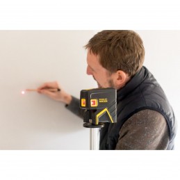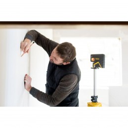 Livré avec sacoche de transport, cible, lunettes de protection, nouveau support, 4 piles - Portée 30m - Précision 3 mm @ 10 m - Autonomie 40H - 5 faisceaux indépendants à haute visibilité : 3 points horizontaux (alignement et équerrage) et 1 point haut / 1 point bas (aplomb)-Blocage du compensateur - Corps protégé par un revêtement soft-grip - Résistant poussière et projection eau : IP54 -Embase magnétique pour fixer directement sur toute structure métallique + Filetage1/4’’ et 3/8’’ pour adaptation sur trépied - Garantie 1 an + 1 supplem