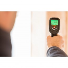 Écran LCD rétro-éclairé - Bouton gâchette pour prise de mesure - Prise de mesure sans contact - Mesures disponibles : Max, Min, Dif, Avg, Hal, Lal - Sauvegarde automatique des données - Pointeur laser - Pile 9V dans la poignée -