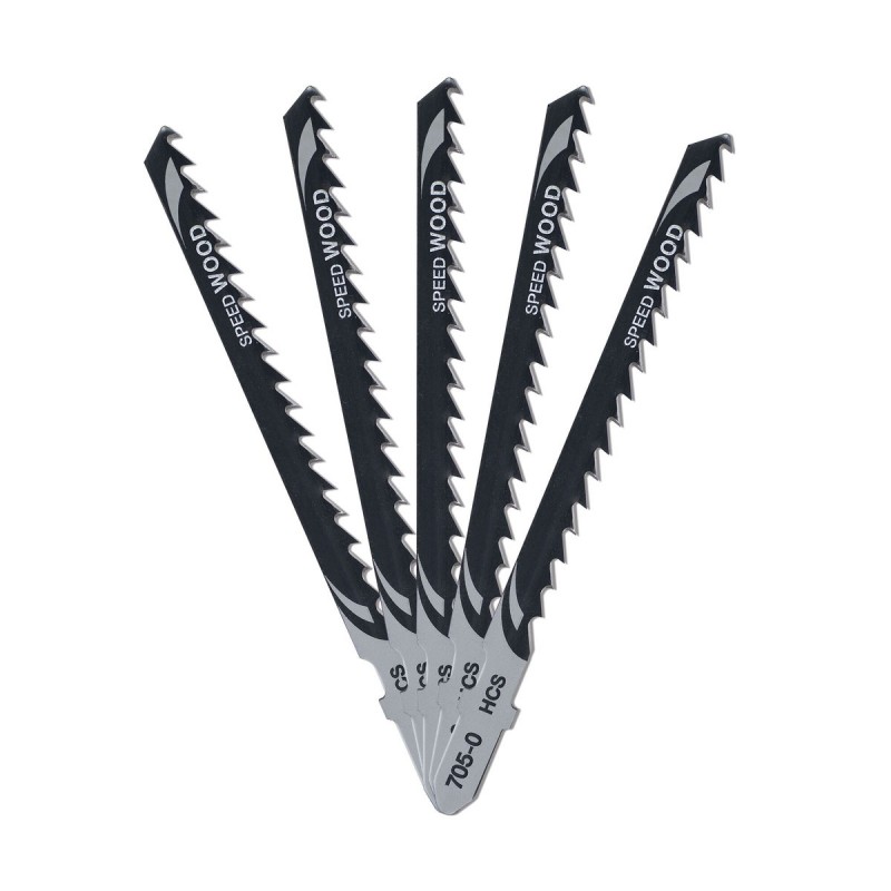 Lames de scie sauteuse HCS offrant une grande durabilité et des résultats de coupe optimaux Composées en acier à forte teneur en carbone flexible (HCS, High Carbon Steel)Pour utilisation dans le bois, le bois revêtu de plastique, de panneaux de fibres et de plastiques Pour couper dans des matériaux tendres tels que le bois, l'aggloméré, le stratifié, le contre-plaqué, le plastique Garantie 3 ans