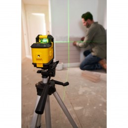Mise à niveau automatique - Projection d'une ligne horizontale à 360° et une ligne verticale - Plage (diamètre) de 25 m - Précision +/-4mm@10m - Plage de nivellement +/- 4°- Blocage du pendule - Double Filetage ¼” - Revêtement renforcé - IP50 - Fourni avec le Quick link, bras articulé permettant d'orienter le laser dans tous les sens, piles et étui de transport avec attache ceinture