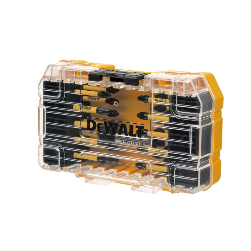 Embouts 25mm: Pz2 x7, Pz3 x1, SL6 x1, T20 x2, T25 x2, T30 x2? Embouts flextorq 57mm: Ph2 x2, Pz2 x2, Pz3 x1? Embouts flextorq 89mm: Ph2 x1, Pz2 x1, T20 x1 ? Porte-embouts magnétique avec zone de torsion? Porte-embouts nettoyable 8mm Embout Extreme Impact Système de torsion breveté DeWalt : Le contour de l'embout se tord pour absorber les chocs et renforcer la durée de vie de l'embout Zone de torsion optimisée pour maximiser la durée de vie de l'embout et sa résistance lors des applications les plus exigeantes Inclus un porte embouts à zone de torsion à utiliser avec les embouts 25mm Compatible TSTAK pour garder tous vos coffrets d'accessoires au même endroit Le coffret contient : Embouts 25mm: Pz2 x7, Pz3 x1, SL6 x1, T20 x2, T25 x2, T30 x2 Embouts FLEXTORQ 57mm: Ph2 x2, Pz2 x2, Pz3 x1 Embouts FLEXTORQ 89mm: Ph2 x1, Pz2 x1, T20 x1 Guide magnétique Douille : 8mm Accessoires indispensables pour votre perceuse visseuse DEWALT